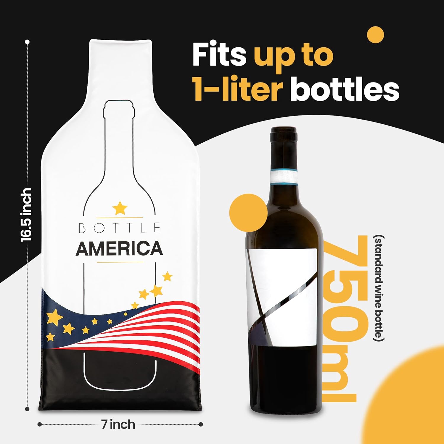 - [STYLE MEETS PROTECTION] Our wine skin for travel makes a cool gift for groups of people on a cruise, at parties, and events--not to mention that they elevate holidays for wine lovers, travelers, movers and packers of wine alike. With a sleek American flag pattern, they not only protect bottles but also make them cooler and stand out.
