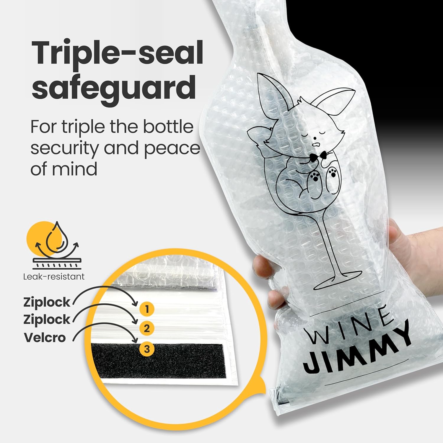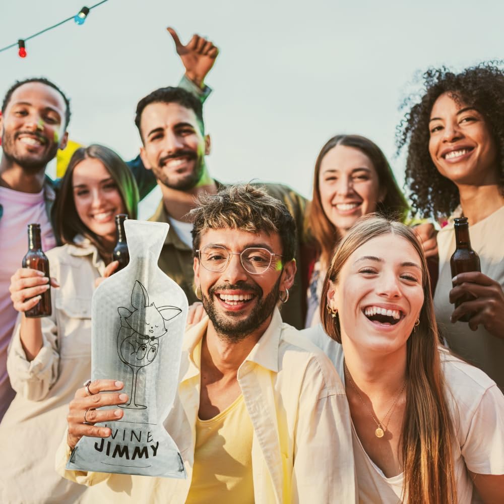 - [WINE TRAVEL BAG] Hit the road with confidence with "Wine Jimmy," your ultimate travel accessory for wine. Jimmy's friendly face on our bottle protector isn't just for show; it’s your assurance that your wine, champagne, and spirits will arrive at their destination securely.